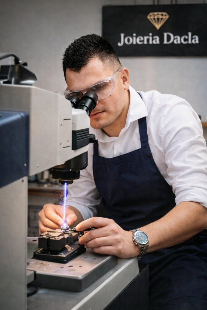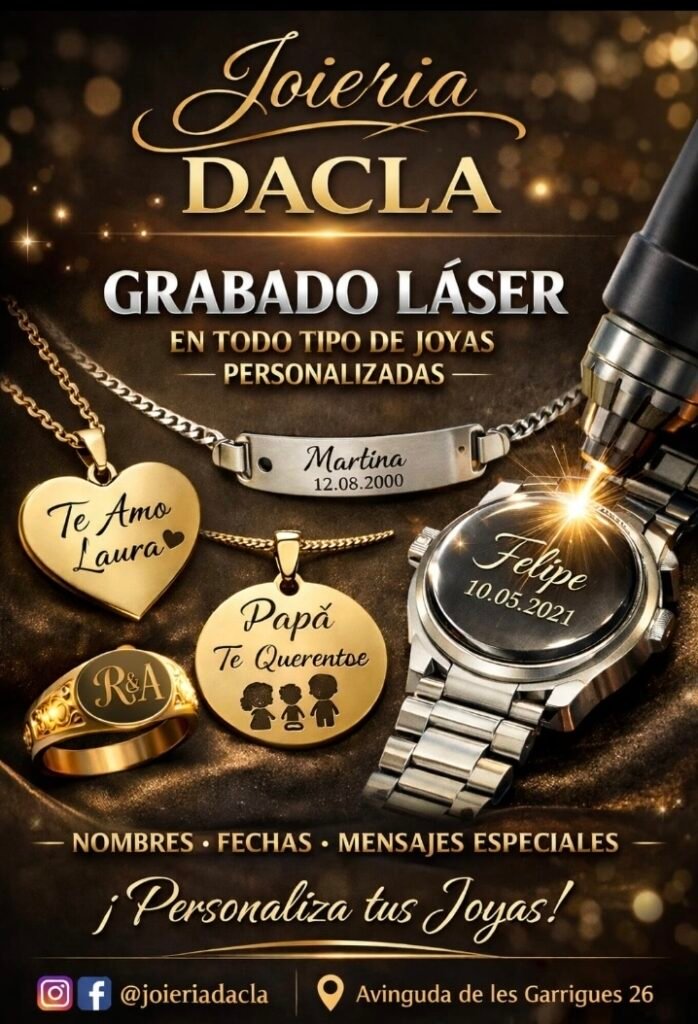 En Joyería Dacla contamos con taller propio de grabado láser, donde realizamos grabados personalizados con máxima precisión y acabado profesional.
